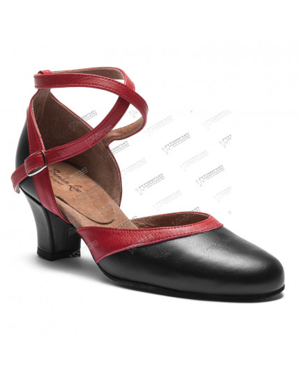 9256 Tanzschuhe schwarz/rot mit Chromledersohle - 5 cm Absatz